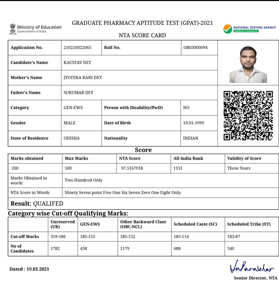 Happy to share that I scored 200 marks in GPAT 2021 securing AIR 1131 #gpat #nta #gpat2021 #ntagpat